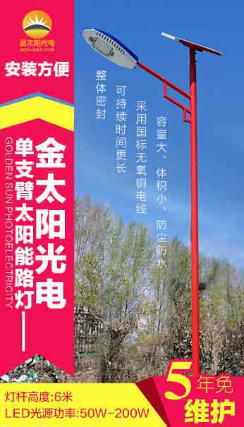黑龍江金太陽(yáng)光電自主研發(fā)設(shè)計(jì)的新款太陽(yáng)能路燈上市,歡迎新老客戶前來淺談業(yè)務(wù)。